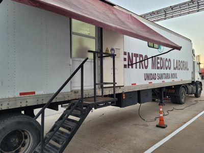 Contamos con una unidad equipada con 5 consultorios para la realización integral de los estudios periódícos sin la necesidad de sacar a los trabajadores durante largas jornadas fuera del lugar de trabajo. Cuenta con consultorios médicos, audiometría, Rx, Electrocardiograma, Electroencefalograma, extracción de sangre para laboratorio, espiromíaetr,í prueba de agudeza visual y todo el soporte técnico y administrativo para realizar los informes en el momento.